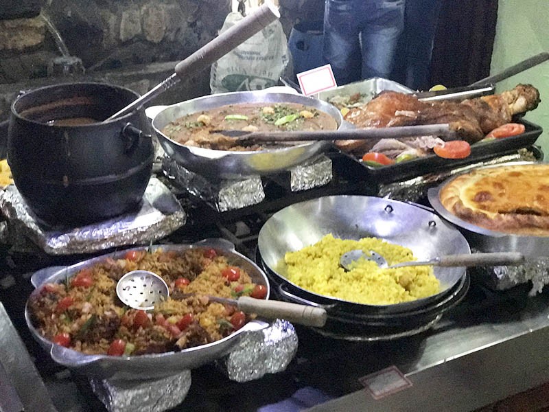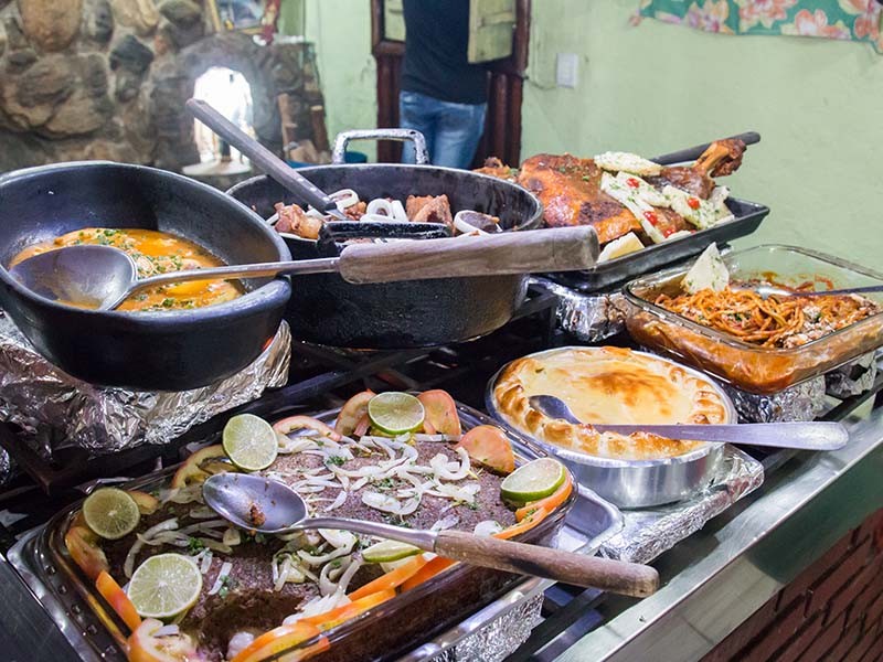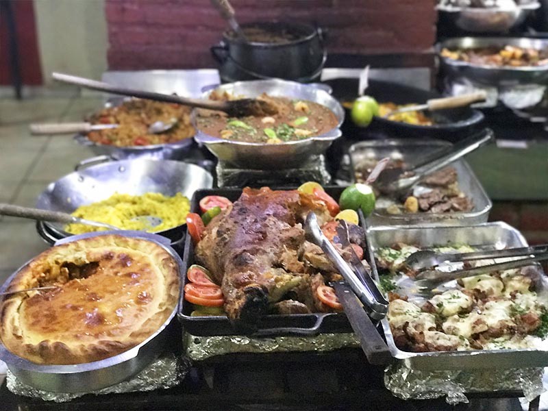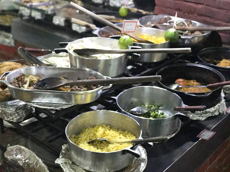 Possuímos também um variado buffet de saladas com frutas tropicais servidas sobre um carro de bois refrigerado e doces caseiros como ambrosia e outras delícias . Nos colocamos à disposição para atendê-lo no que for preciso , e ainda nos disponibilizamos para fazer eventos reservados em nosso salão .Aceitamos todos os cartões de créditos e ticktes refeição .