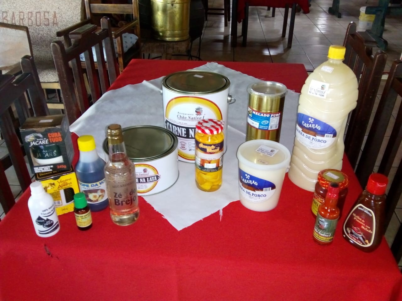 Quando vier ao Restaurante, visite nosso empório para levar produtos típicos com a qualidade Chão Nativo. Temos Carne de Lata , Cachaça envelhecida no barril de Carvalho Europeu, Pimenta Trinidad Scorpion 2°- mais ardida do mundo, Linguiça suina de paleta/pernil , Pequi em conservas , Paçoca de carne feita no Pilão.